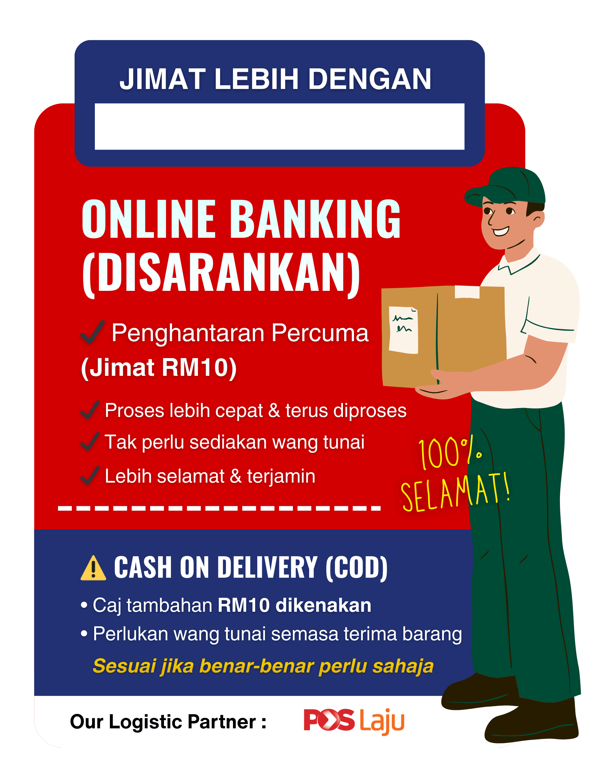 All prices displayed are in Malaysian Ringgit (MYR) unless stated otherwise. Payments must be completed in full before orders are processed. We reserve the right to refuse or cancel any order at our discretion.